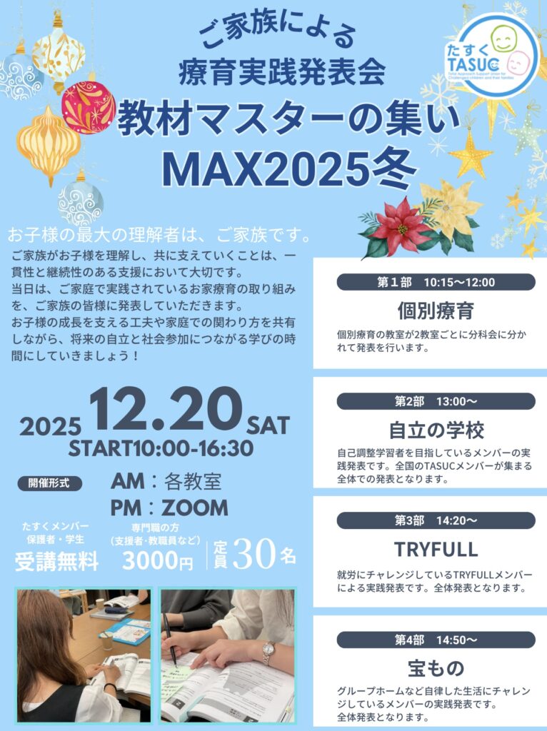 12月20日(土)は、教材マスターの集いMAXです。