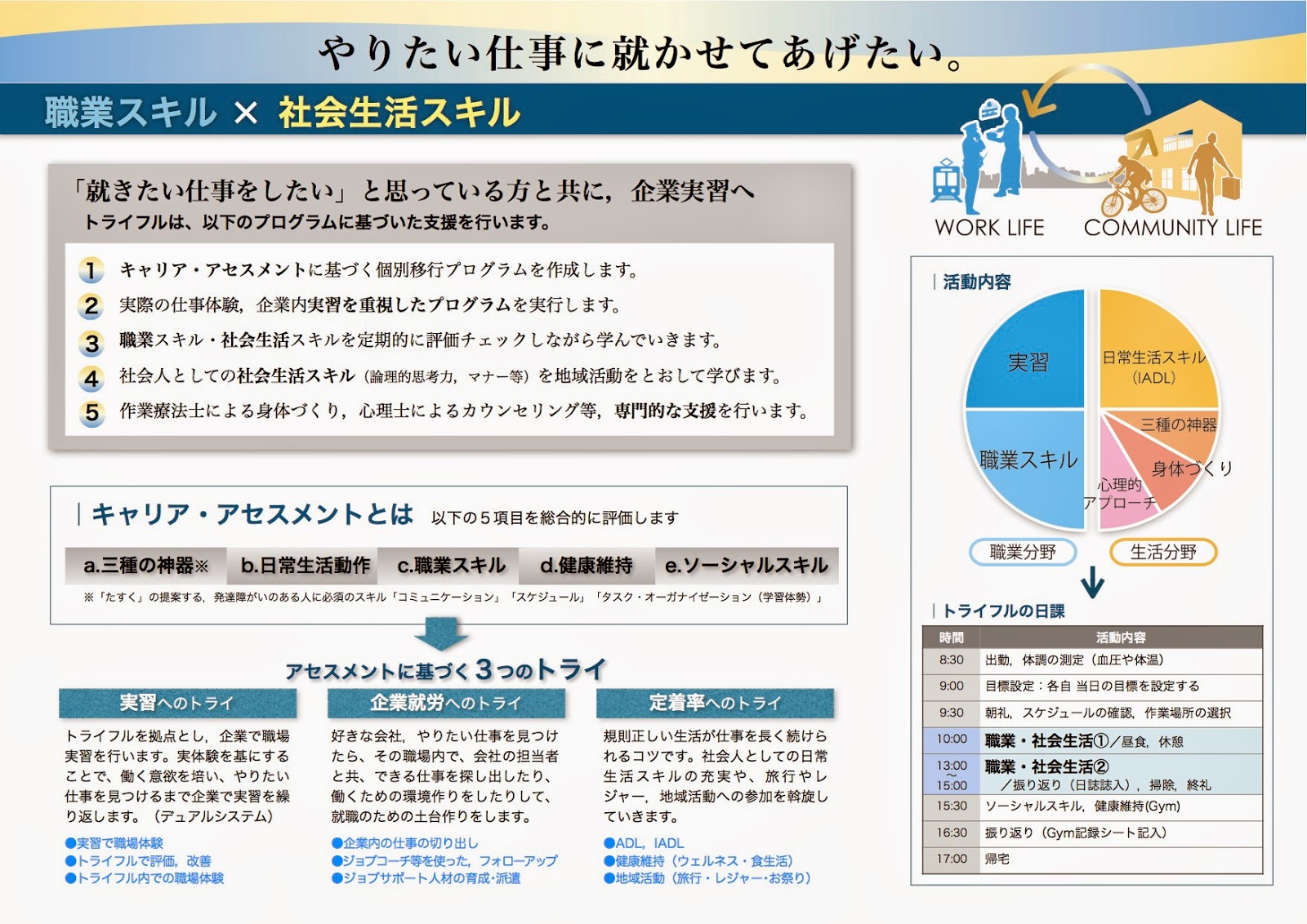 工程表を基準に合格証をもらって再挑戦に挑む「W-Base(ワークベース)」の二本柱です。