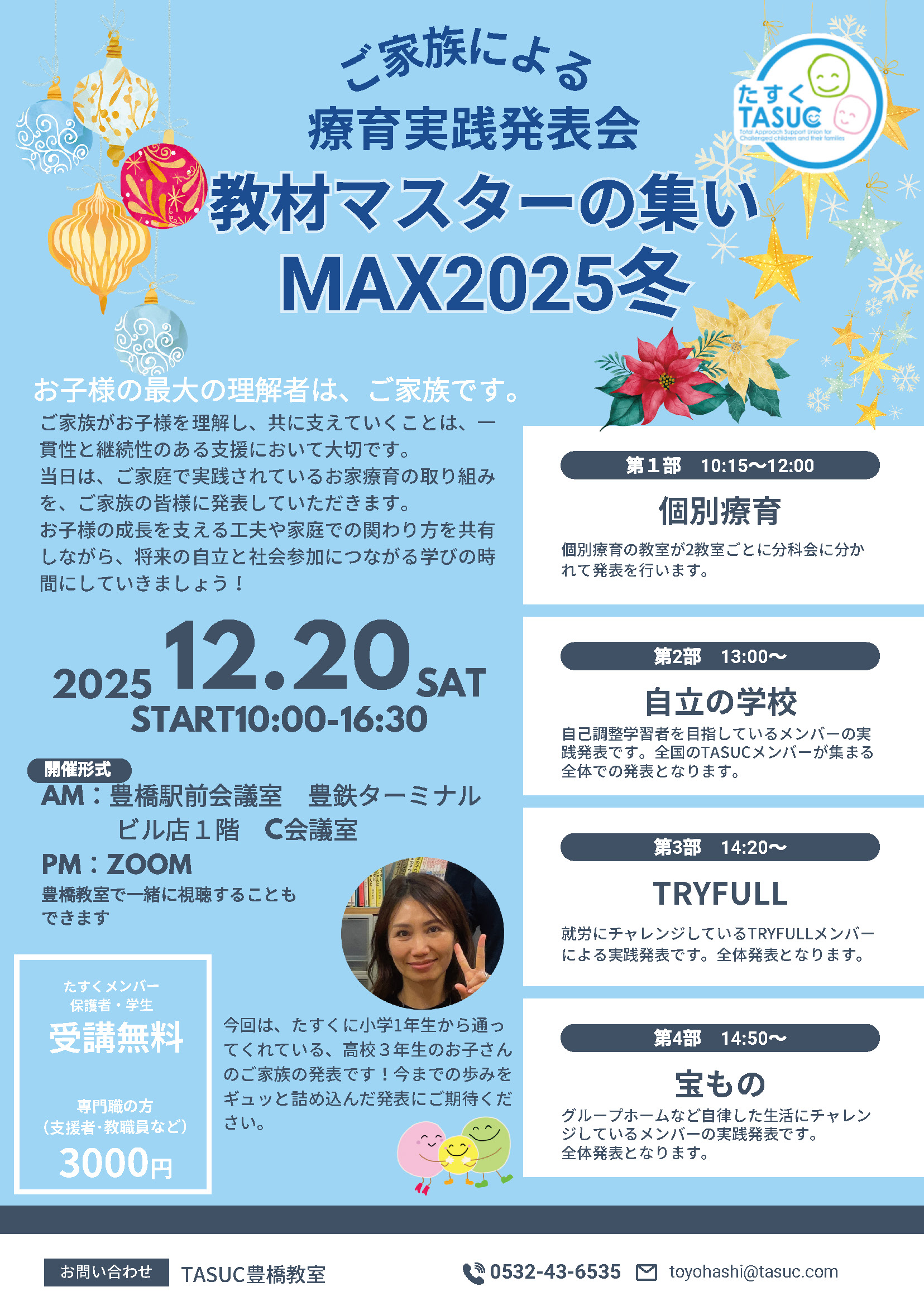 12月20日(土)は、全国のたすくグループ事業の発表を聞くことができる