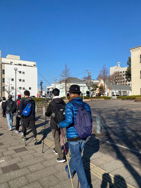 参加者は、教室に通う年長児から成人の方までと幅広く、ロングコースとショートコース、それぞれに分かれて歩きました。「最後まで大人と歩調を合わせて歩く」「リズムよくノルディックポールをついて歩く」「腕を引いて姿勢よく歩く」など、一人ひとりが目標を持って取り組みました。