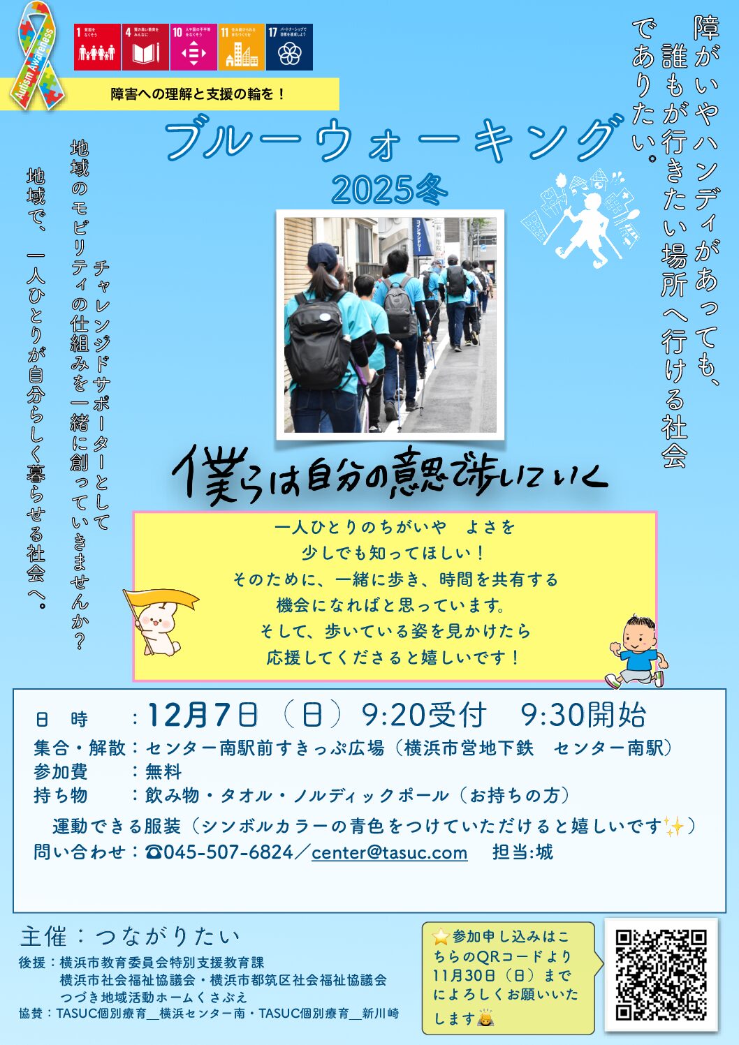#ブルーウォーキング #障害者週間 #TASUC #たすく #センター南 #センター北 #インクルーシブ #自分の意思で歩く #歩く自由 #発達障害サポート #地域で育つ #一歩ずつ前へ