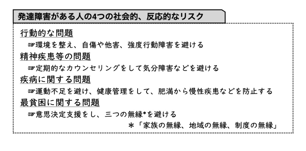 まず、精神疾患等の二次障害を防ぐためには、3つのポイントが重要であると考えています。