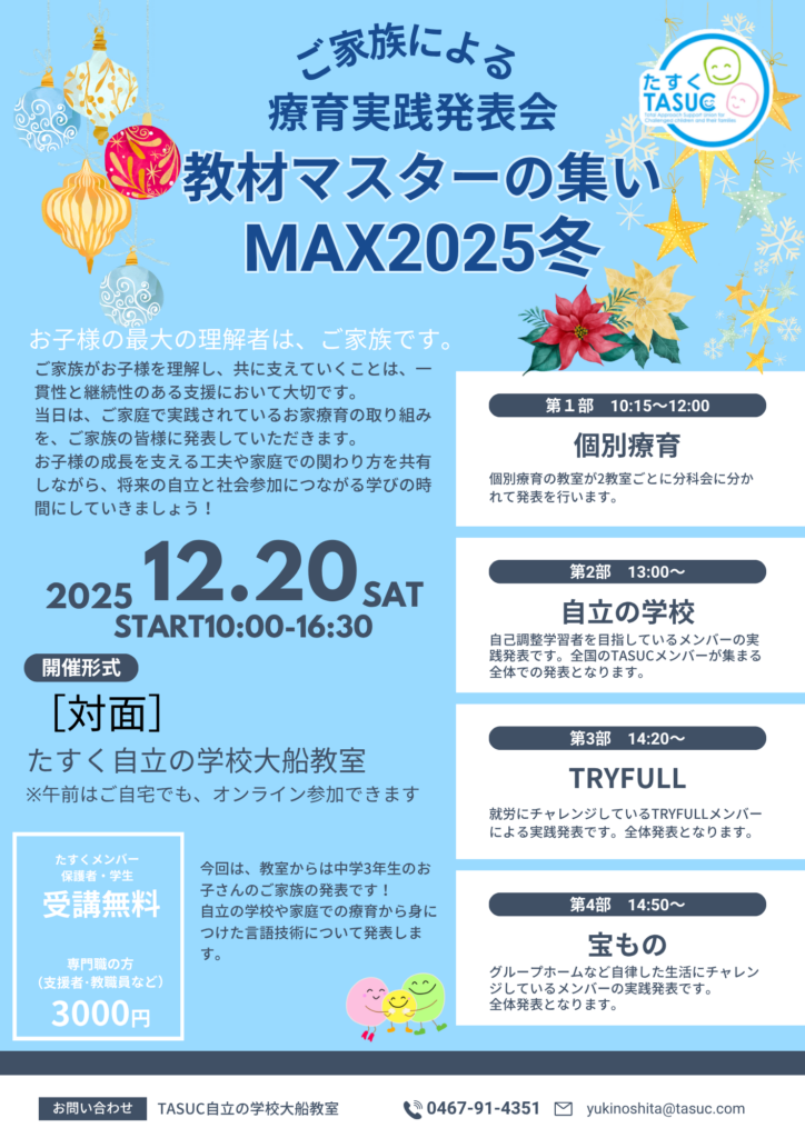 さて、たすくグループでは12月20日(土)に教材マスターの集いMAXを控えています。全ての教室が事例発表を通して成果を発表し合う会です!